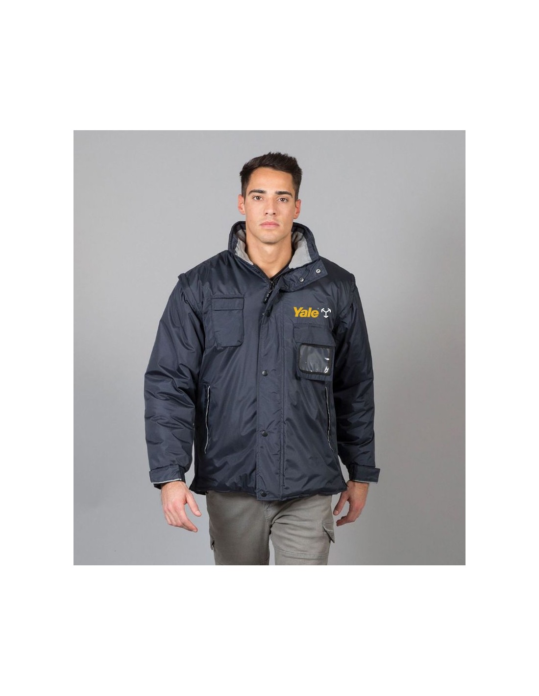 Una tasca sul torace con velcro, con portabadge estraibile a scomparsa